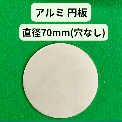 こちらのページではアルミ(A5052) 穴なし 直径70mmの円板を規格品として販売しております。
